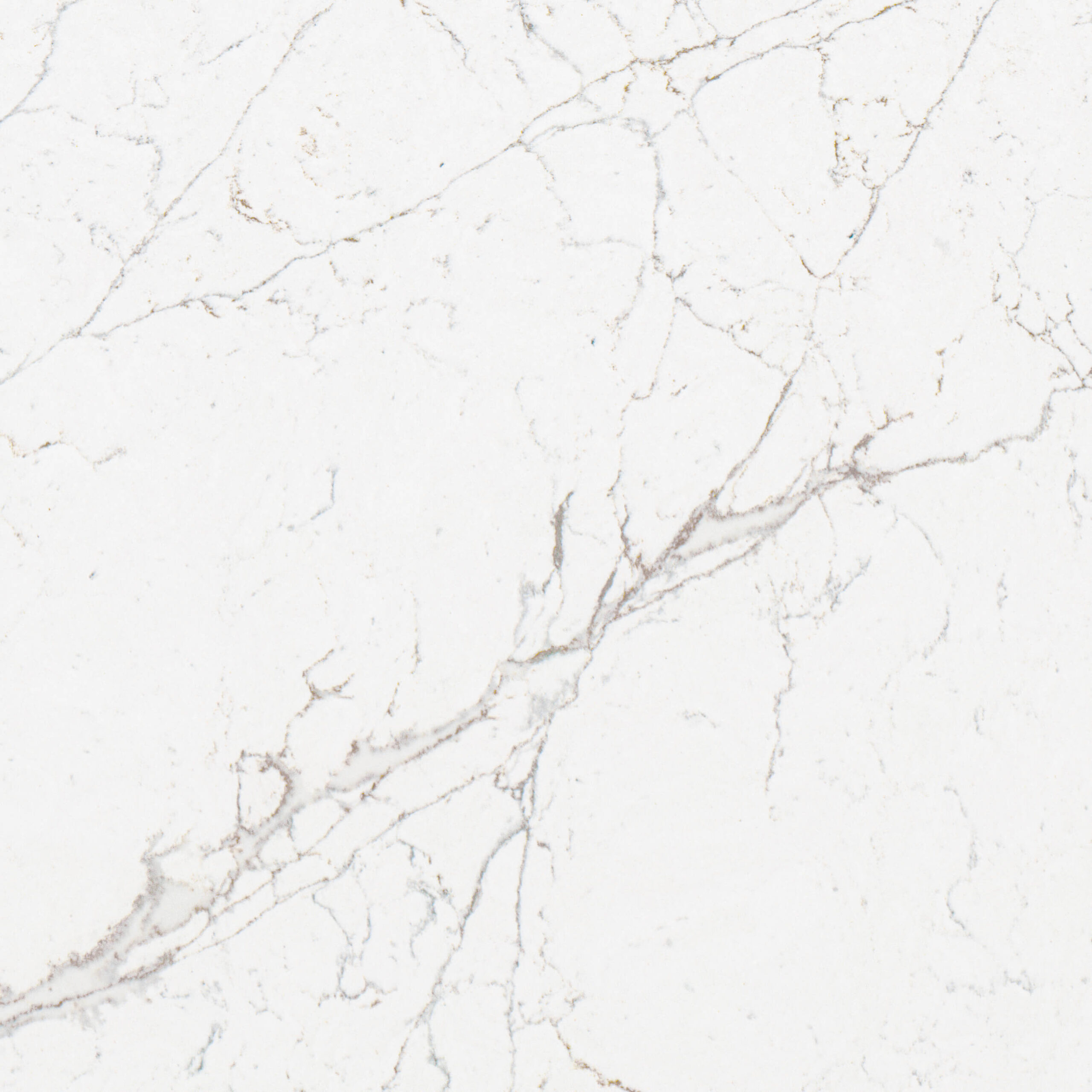 Exkluzivní deska Calacatta Olympos z technického kamene nabízí bílý podklad s výrazným šedým a jemně zlatavým žilkováním, které věrně napodobuje luxusní přírodní mramor. Její dramatický a přitom elegantní vzhled dodává interiéru noblesu a stává se nepřehlédnutelným prvkem prostoru.